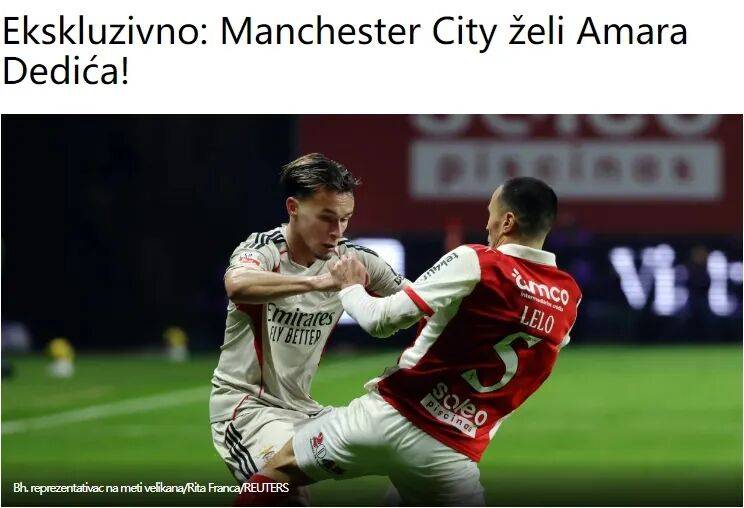 波黑媒体Oslobodjenje消息,在签下塞梅约之后,曼城现在正寻求加强防线,而本菲卡后卫阿马尔-德迪奇正是他们的目标之一。