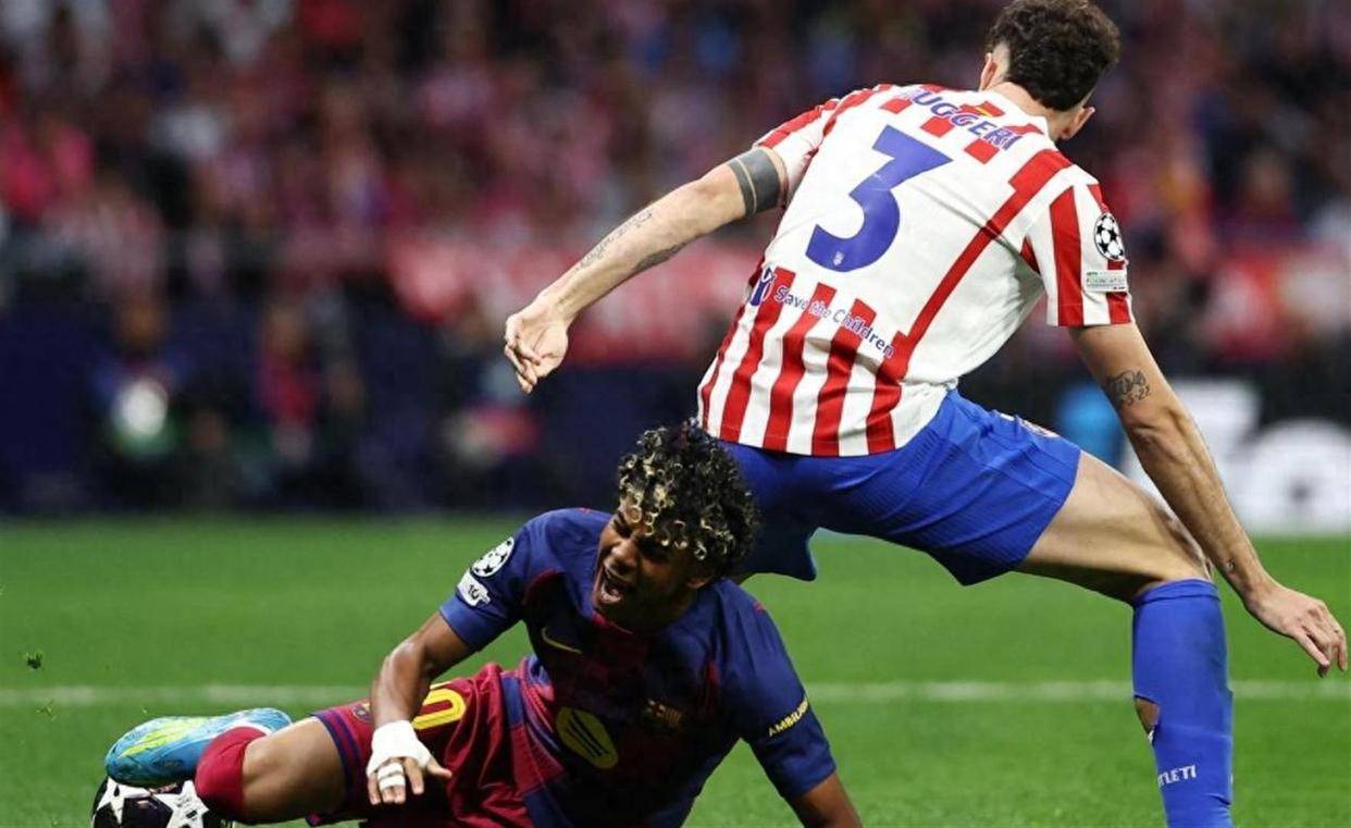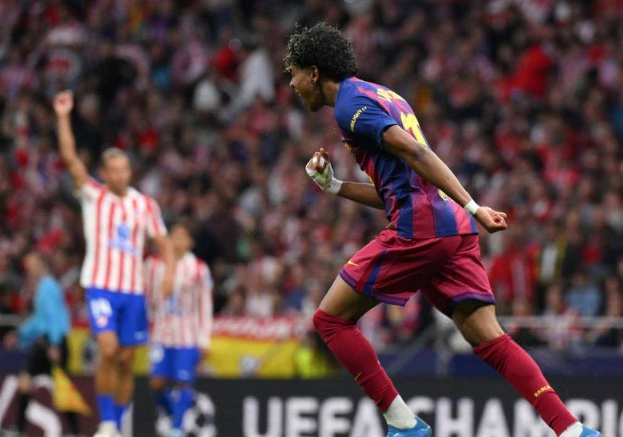 比赛伊始,戏剧性便悄然而至。开场仅4分钟,马竞后防线便因一次低级失误自乱阵脚。后卫朗格莱的鲁莽回传,被敏锐的巴萨边锋费兰-托雷斯洞悉,他迅速抢断并送出一记穿透性极强的直塞。19岁的妖童亚马尔,挟风雷之势单刀直入,面对出击的门将,他冷静推射,皮球应声入网。这记闪电般的进球,不仅点燃了巴萨逆转的希望火苗,更创造了巴萨自2018年3月14日以来,在欧冠淘汰赛中的最快进球纪录。彼时,传奇梅西在对阵切尔西的比赛中,也在第3分钟完成了破门,而如今,亚马尔以同样的方式,向偶像致以了最崇高的敬意。